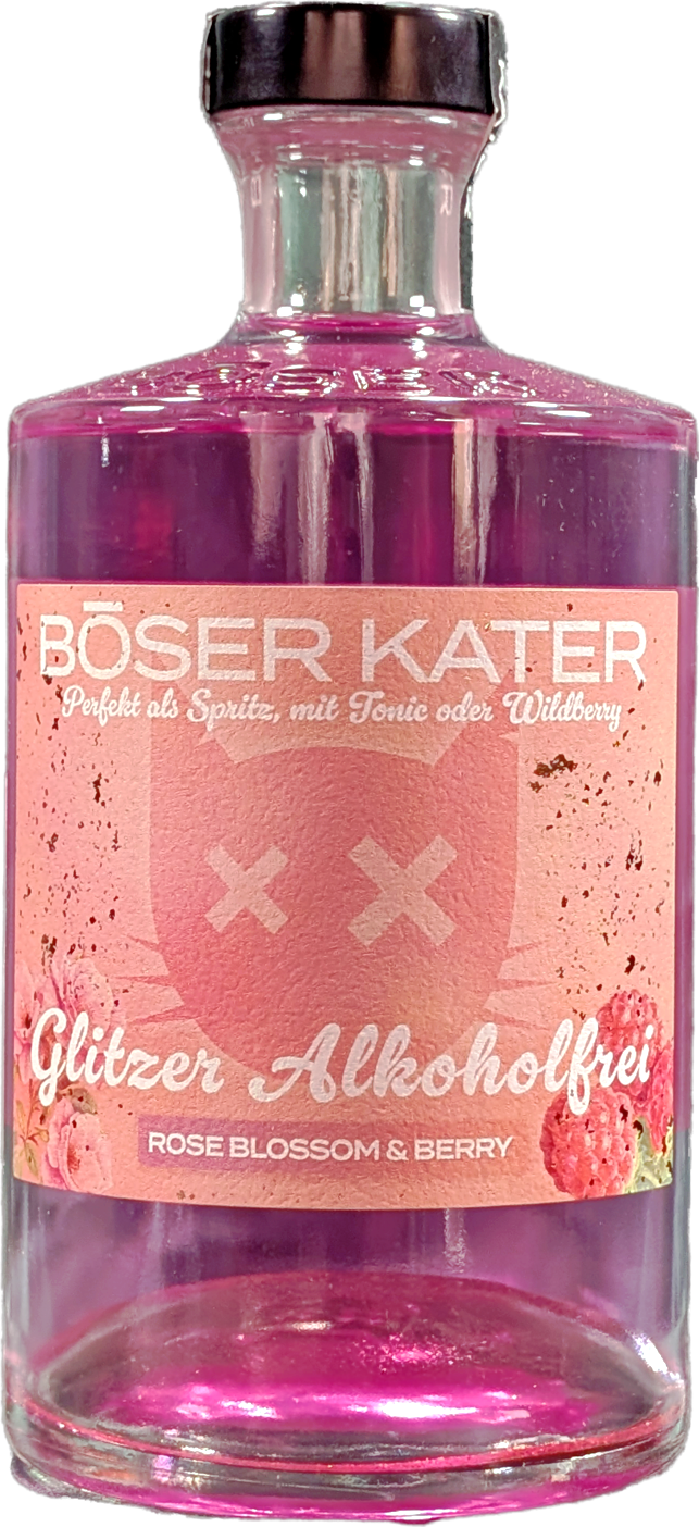 Böser Kater – Alkoholfrei – Rose Blossom & Berry mit Glitzer – Perfekte Basis für Spritz Cocktails – 0,5l